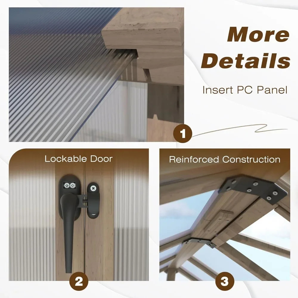 6x12FT Outdoor, Wooden Greenhouse with Cedar Frame