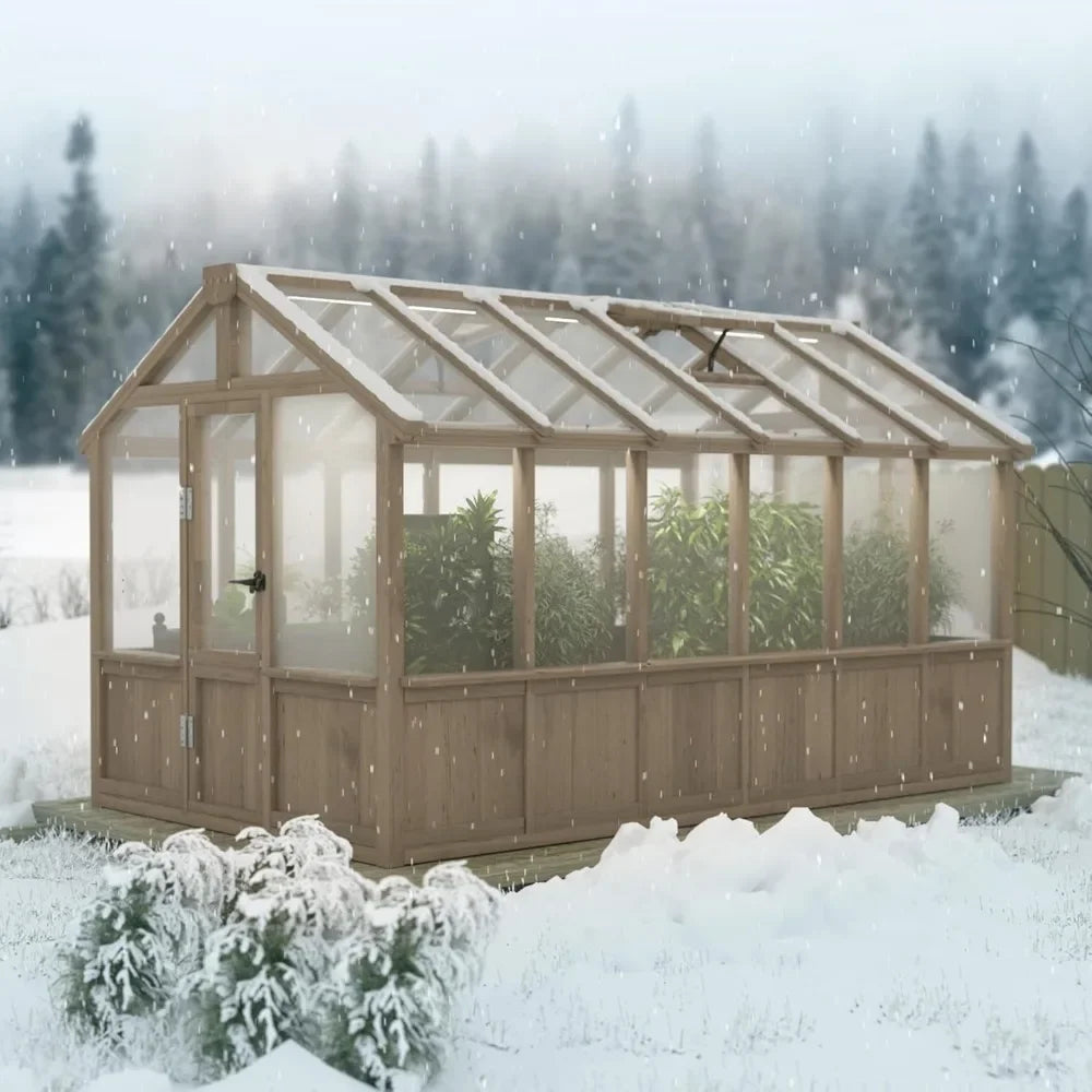 - Adjustable Ventilation Window - The greenhouses for outdoors have good heat insulation and adequate ventilation, which can keep the green house cool in warm months. You can also prevent humidity through good ventilation. The maximum adjustment angle of the ventilation opening in our wood greenhouse is 45°. greenhouse is suitable for both cold and hot weather, you can enjoy your favorite gardening all year round.