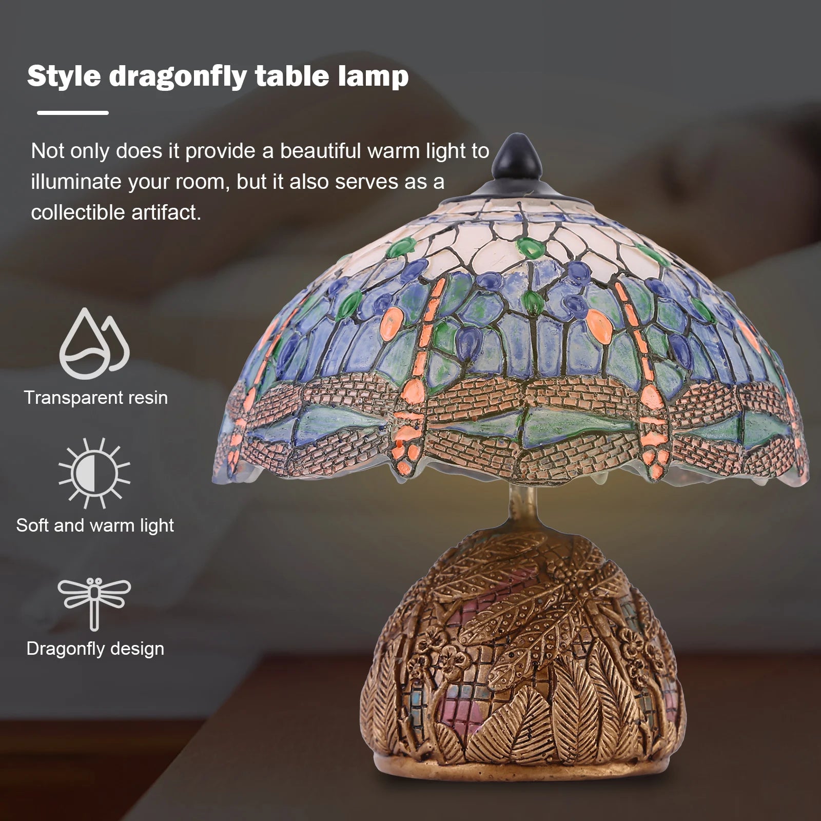 Dragonfly Style Table Lamp - Antique Luxurious Boho Resin Desk Light, Vivid Color & Durable, Dragonfly Floral Vintage Light with Base, Bedside Night Lights, Art Craft Gifts for Bedroom Living Room Farmhouse Study Bookcase Decoration