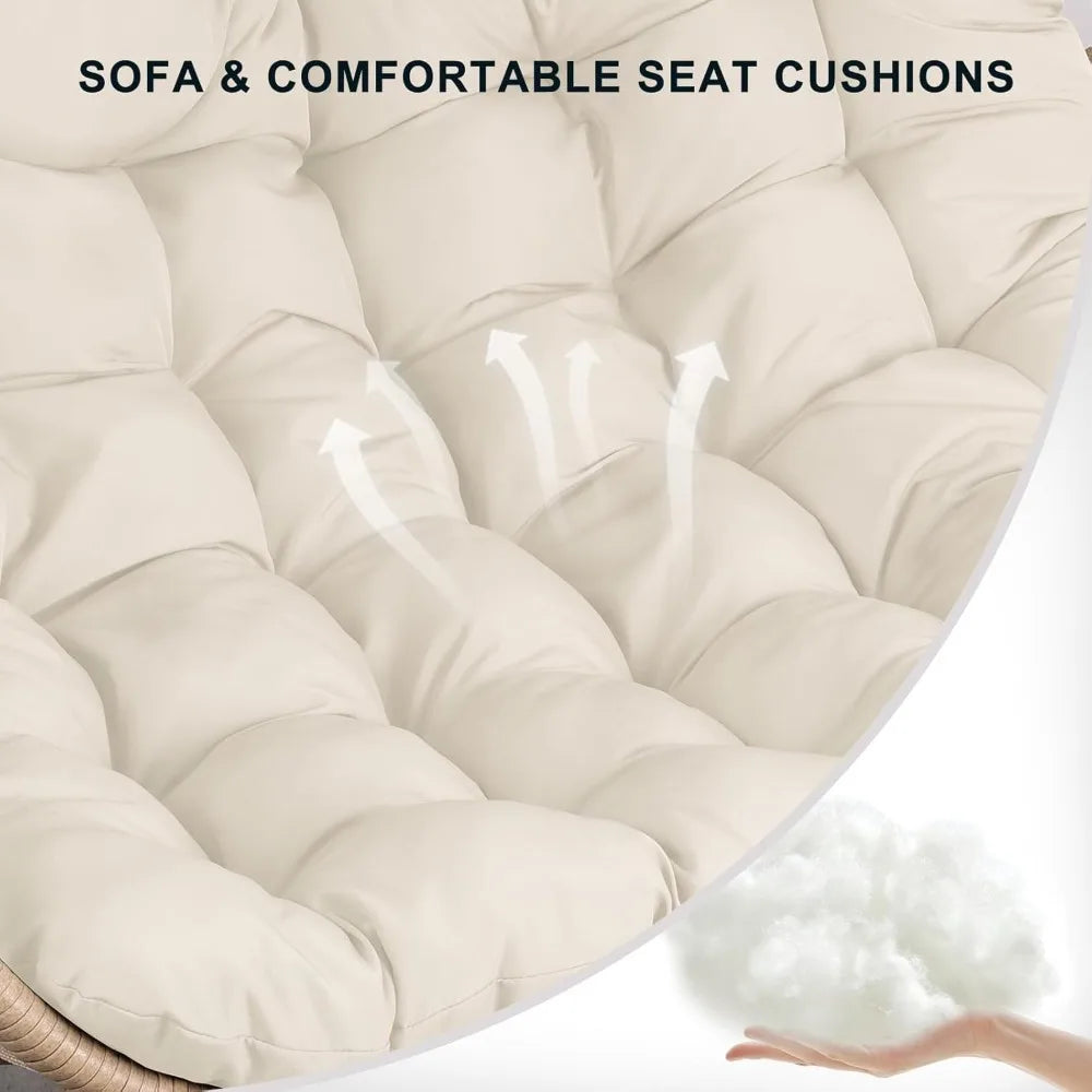 - PORCH HANGING SWING:For rainy days, you can remove the double egg chair swing from the frame and hang it on your porch, protecting the cushions and the chair from getting wet. This way, you can still enjoy a cozy afternoon on your porch